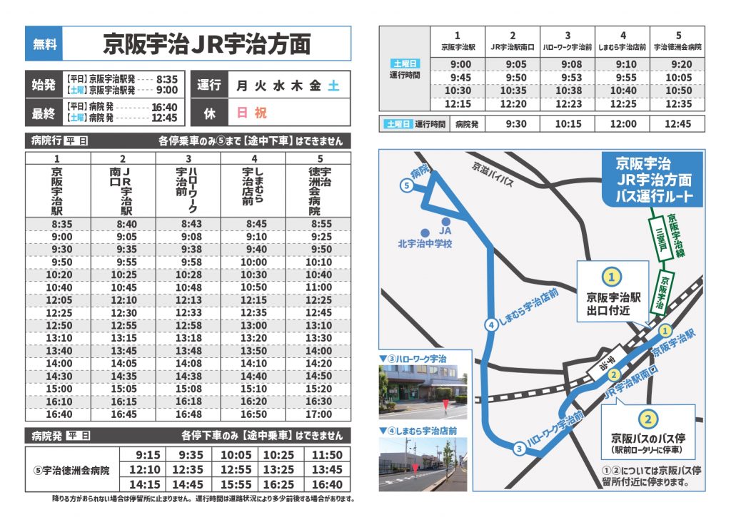 無料送迎バス(京阪宇治駅・JR宇治駅方面)