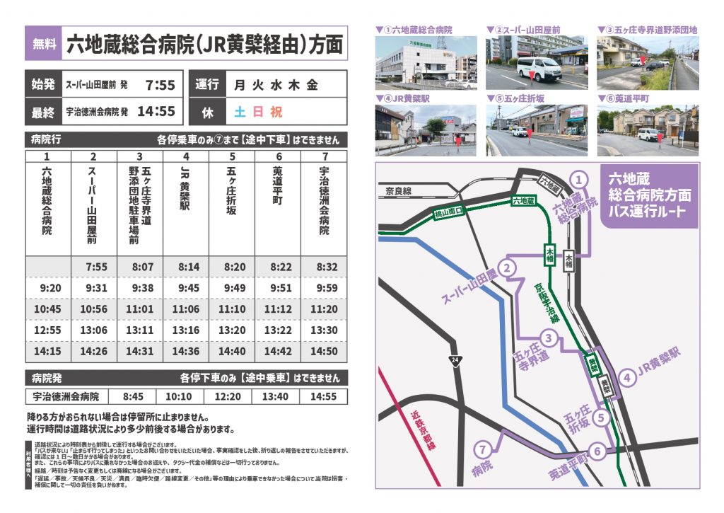 無料送迎バス(六地蔵総合病院・JR黄檗経由方面)