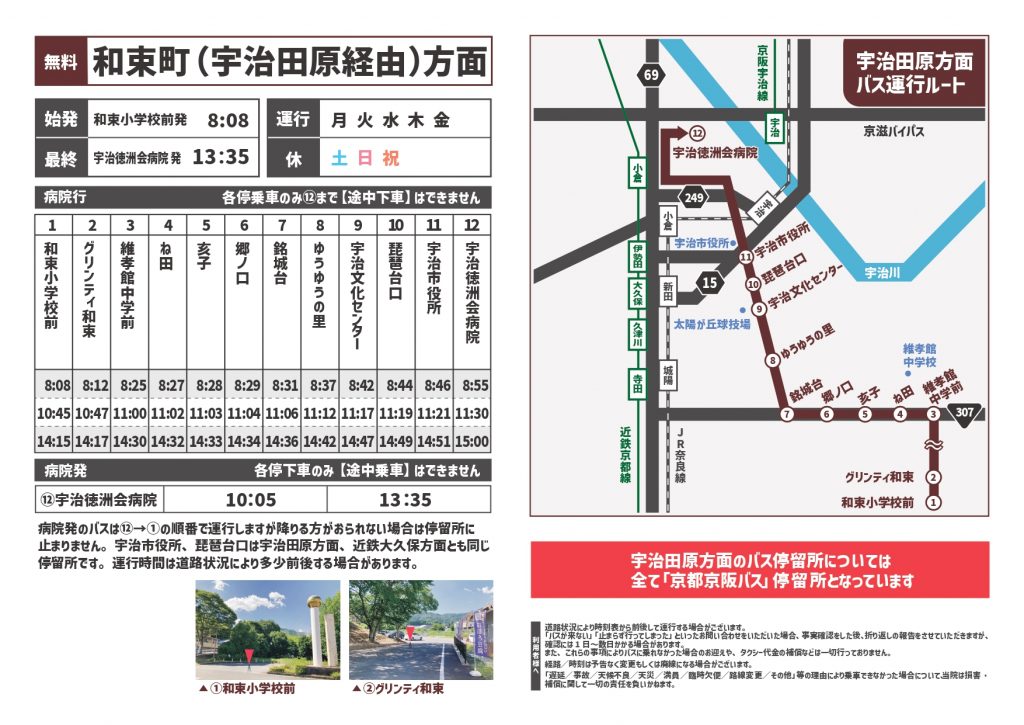 無料送迎バス(和束町・宇治田原経由方面)